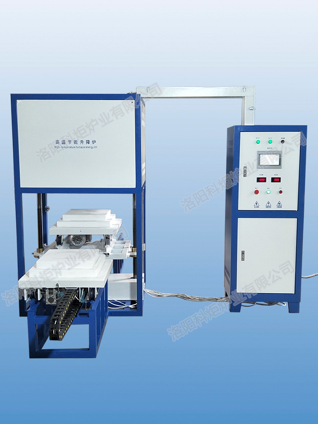 高溫升降爐結構,裝料臺有軌道移出到指定位置進行裝料卸料工件堆放在工作臺上,上下電動傳動,爐門上下按鈕開關電動控制;爐膛四面加熱,爐溫均勻性非常好,的爐膛材料和穩定的溫度控制系統。爐襯采用輕質氧化鋁纖維板拼裝而成的爐體,爐底采用輕質保溫磚和重質可承重耐火磚砌筑,爐門車采用機械傳動