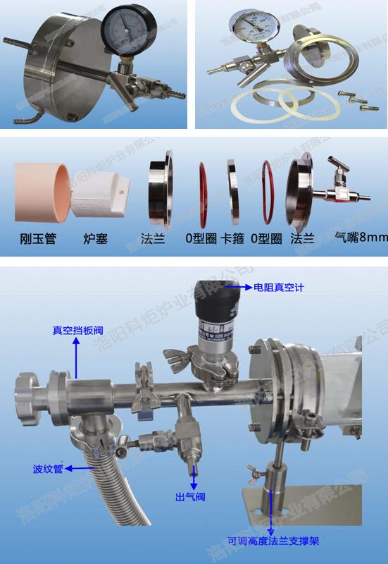 3、 爐管材質:石英管/剛玉管/合金管/不銹鋼管(根據溫度而定)的連接方式,可以通入各種不同的保護氣氛